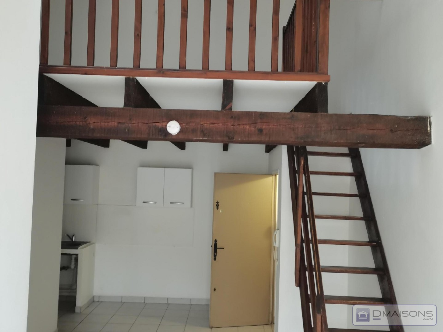 Appartement T2/T3 de 58m² au 1er étage entièrement repeint: séjour coin cuisine + vaste mezzanine, une chambre, salle d'eau, wc.